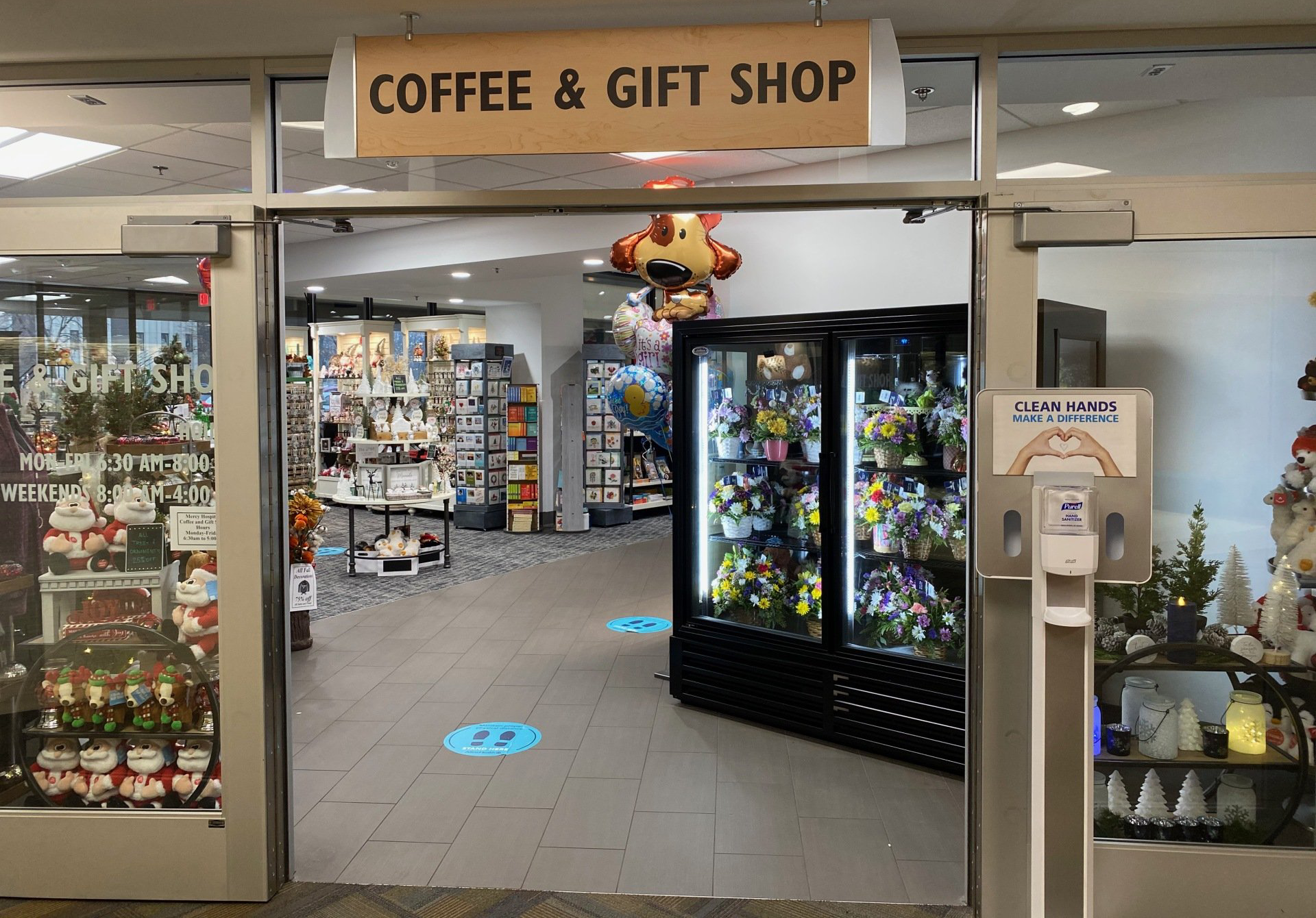 We are located inside Mercy Hospital at the east end of the campus. Whether you're looking for flowers to send to a patient, a birthday gift, or a quick bite to eat while visiting, we have the perfect solution!